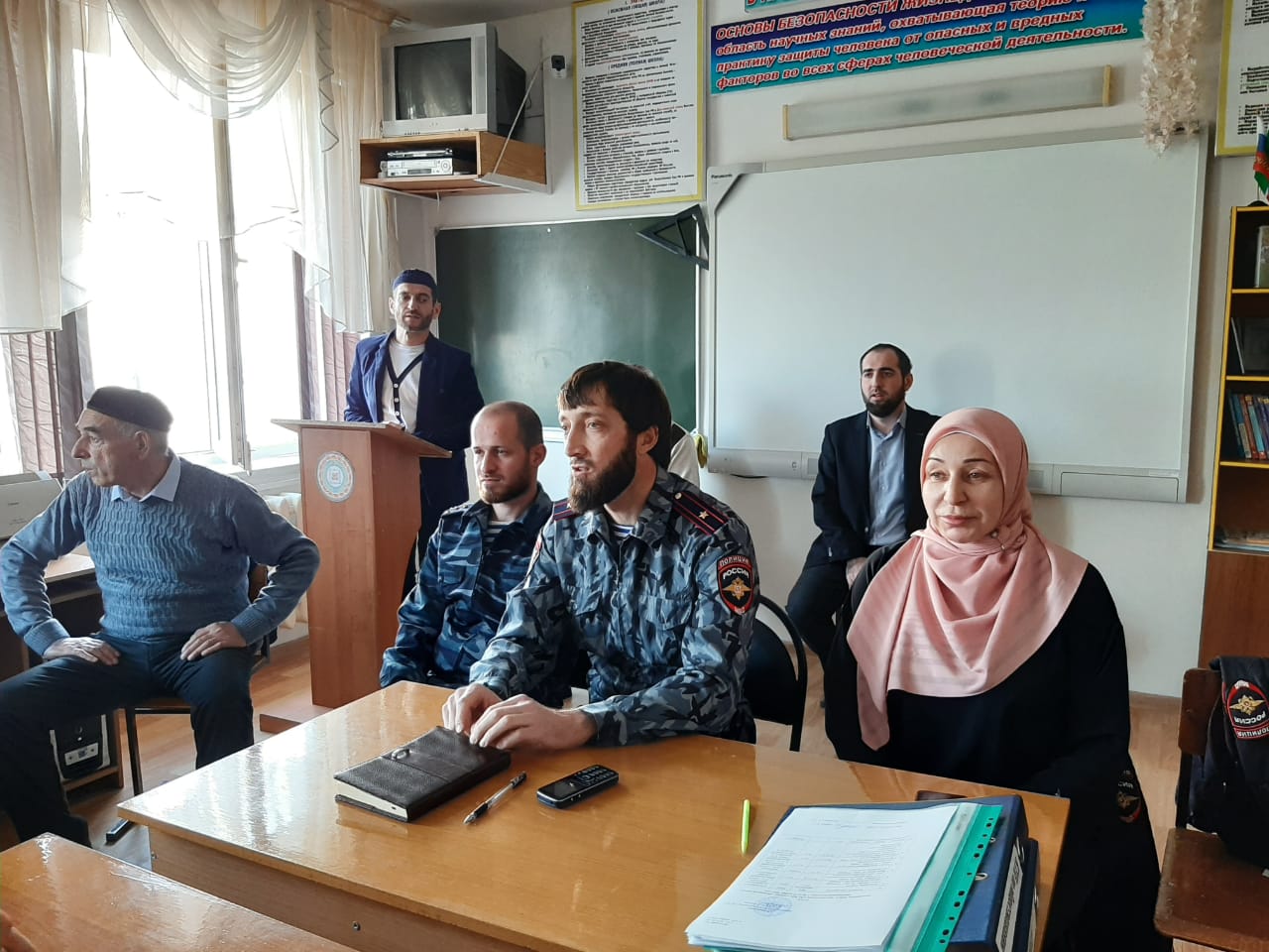 Сегодня в нашей школе прошла встреча старшеклассников и педагогического коллектива с заместителем начальника ОУУП "ПДН-начальника отделения ПДН ОМВД России по Курчалоевскому району майором полиции Яхъяевым М-Э. Х., и инспектором отделения ПДН капитаном полиции Асхабовым М. С.