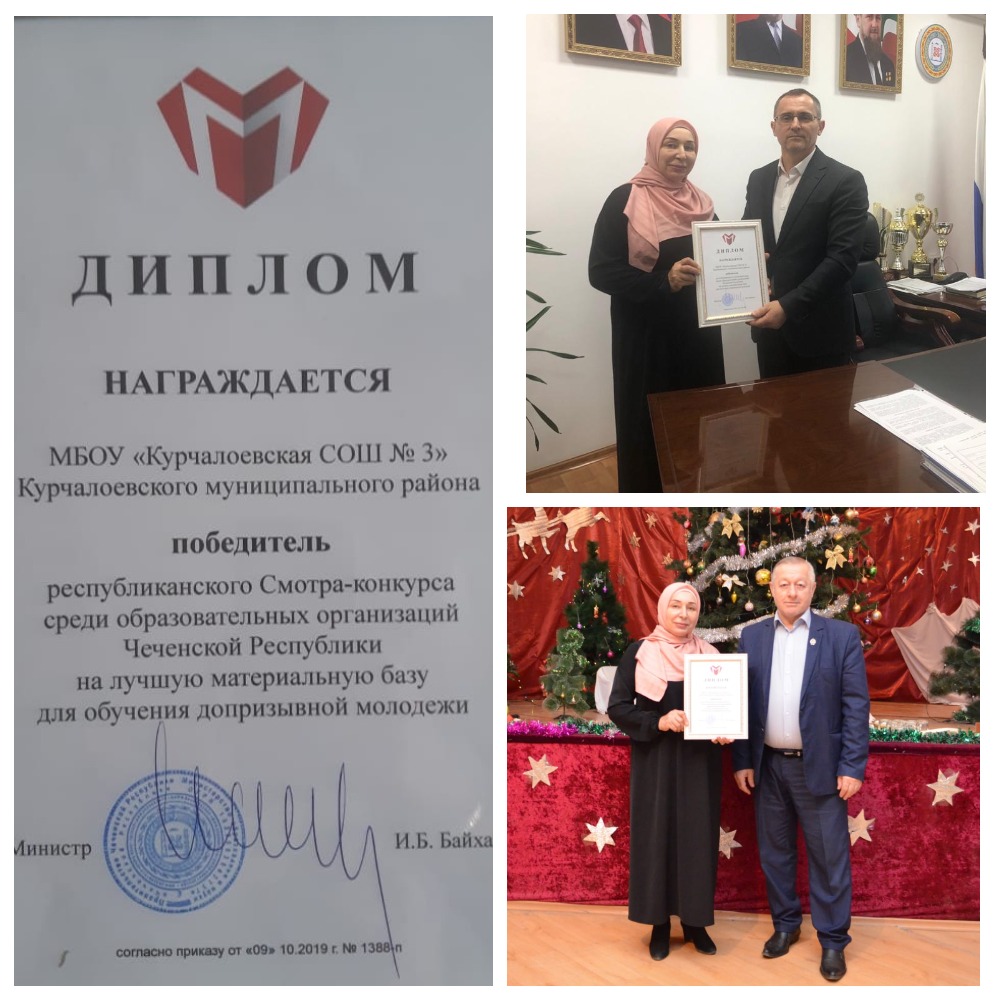 Наша школа награждена дипломом "Лучшая материальная база в Чеченской Республике для обучения допризывной молодежи." В этом большая заслуга учителя обществознания и ОБЖ Эльтемирова Хасейна Лом-Алиевича и директора школы Алиевой Раисы Джунаидовны.