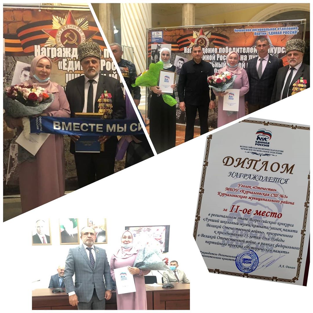 02.10.2020Уголок "Отечество" МБОУ "Курчалоевская СШ3" Курчалоевского муниципального района заняла 2 место в региональном этапе Всероссийского конкурса " Лучший школьный музей/уголок, памяти Великой Отечественной войны", приуроченного к празднованию 75 летия Дня Победы в Великой Отечественной войне.