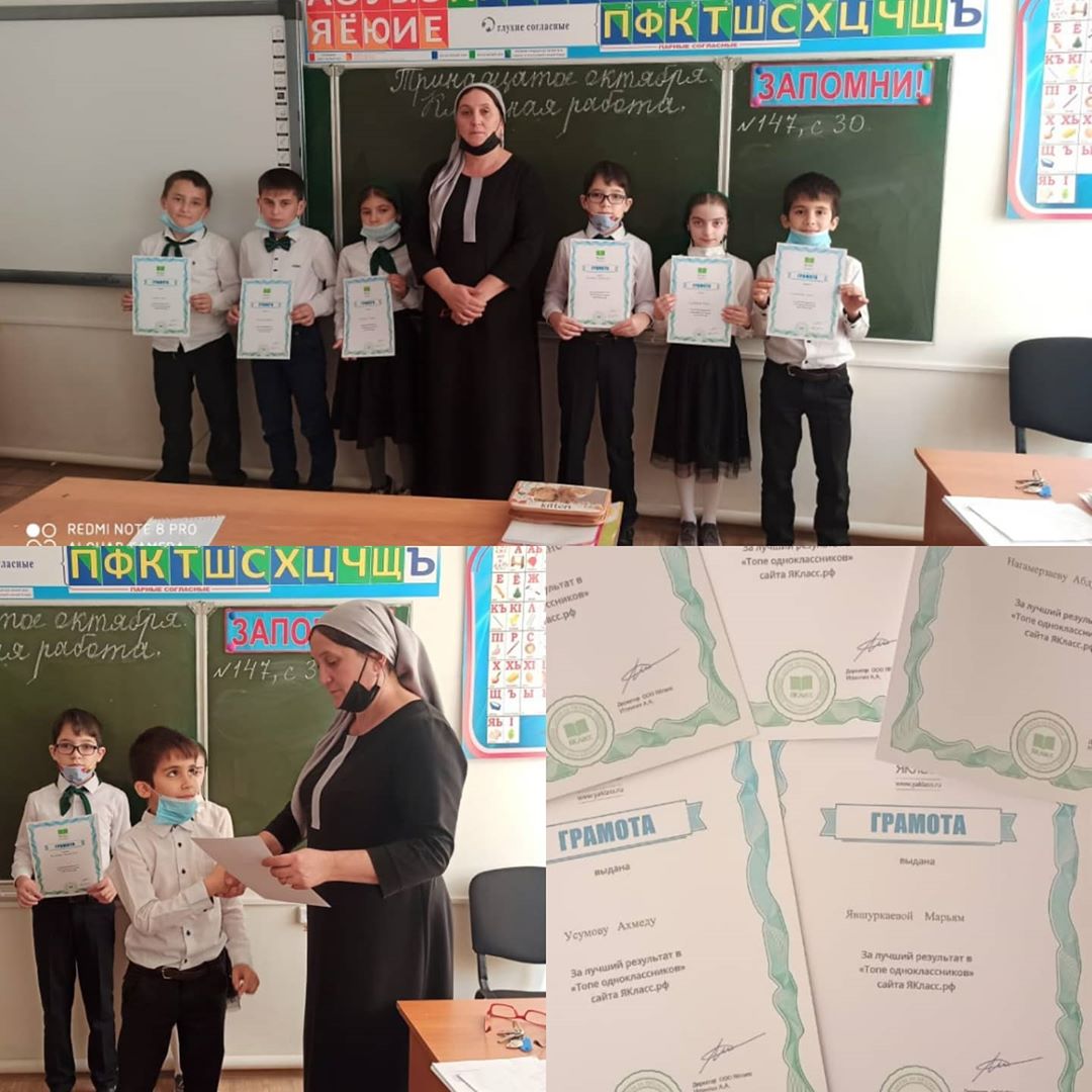 Награждение учащихся 4 г класса за лучший результат на сайте "Я класс"