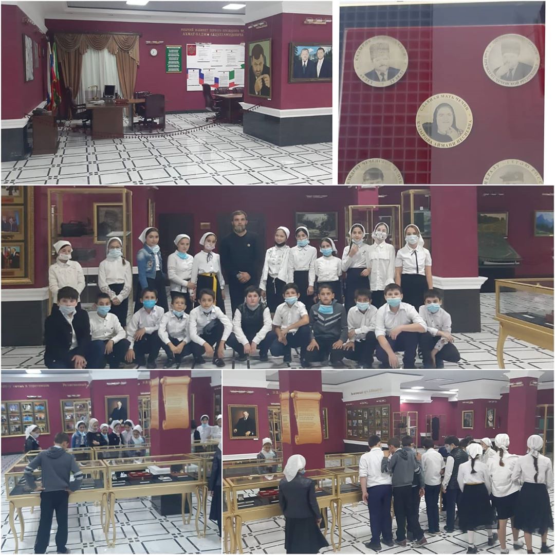 12.10.2020Сегодня ученики 6"а"класса вместе с кл.руководителем Ялдаев А. У-П. посетили Государственный мемориальный музей А. А. Кадырова. Здесь для них была организована увлекательная экскурсия в процессе которой ребятам рассказали о жизненном пути человека, имя которого навсегда вписано в историю.Ахмат-Хаджи Кадырова помнят, как мудрого, заботливого и справедливого человека. Его жизненный путь послужит примером не одному поколению, как путь человека, который пожертвовал собой ради мира на чеченской земле.В музее ребята узнали много интересного из истории чеченского народа.Ребята с большим интересом рассматривали экспонаты и экспозиции музея. А также фотографировались на их фоне.