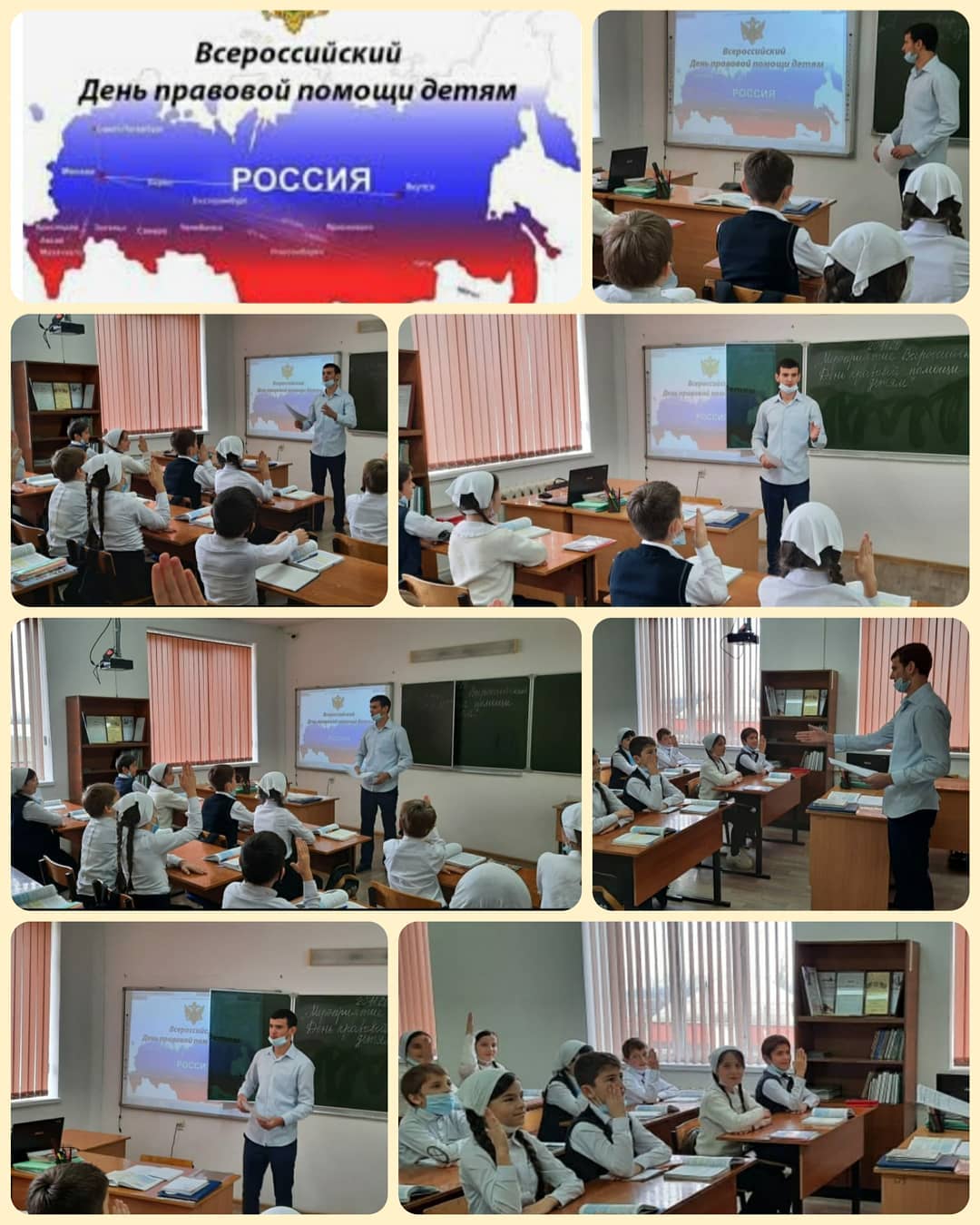 19.11.2020Внеклассное мероприятие «Всероссийский День правовой помощи детям» провёл историк Вахаев Аслан С-М в 5 ,,а" классе.Цели и задачи:-Знакомство учащихся с неотъемлемыми правами, закрепленными в Конвенции о правах ребенка, привлечение внимания детей к проблемам соблюдения прав человека.- воспитание законопослушного гражданина, обладающего знаниями основных правовых норм и умениями использовать возможности правовой системы государства;- повышение уровня правовой культуры школьников;- развитие правовой грамотности и правосознания учащихся;- формирование у обучающихся умения защищать свои права при помощи закона.Завершил мероприятие Вахаев А.С-А.со словами из стихотворения – пожелания.(право на воспитание в семье).В этот день хочу я пожелать,Чтобы каждого ребенка в миреЖдали дома и отец и мать,Опекали, холили, любили.Пусть не будет брошенных ребят,Каждому - семью, отца и маму,Дом, в котором мир всегда и лад,Дом, в котором не бывает брани.Пусть из окон льется детский смех,Детские улыбки пусть сияют.Поздравляю я сегодня всех,От души, от сердца поздравляю