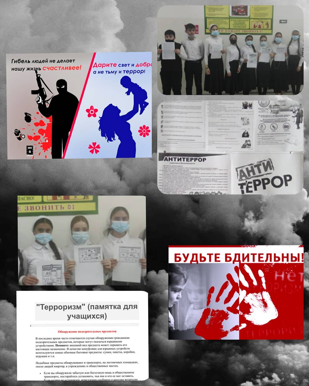 22.12.2020В целях формирования общественного сознания и гражданской позиции подрастающего поколения в школе проведены мероприятия, направленные на формирование толерантности, расспространены среди учащихся памятки с инструктажем в случае угрозы террористического акта.Сегодня мы едины в своем намерении всеми силами противостоять терроризму.В наших собственных силах обезопасить себя и окружающих!Нам нужен мир! Тебе и мне,И всем на свете детям!И должен мирным быть рассвет,Который завтра встретим.Нам нужен мир, чтоб строить города,Сажать деревья и работать в поле.Его хотят все люди доброй воли.Нам нужен мир навеки! Навсегда!