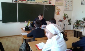Он провел беседу с учащимися начальных классов на тему " Правила дорожного движения". Также была проведена беседа со старшеклассниками о работе полиции, какую роль играет в нашей жизни эта правоохранительная структура.