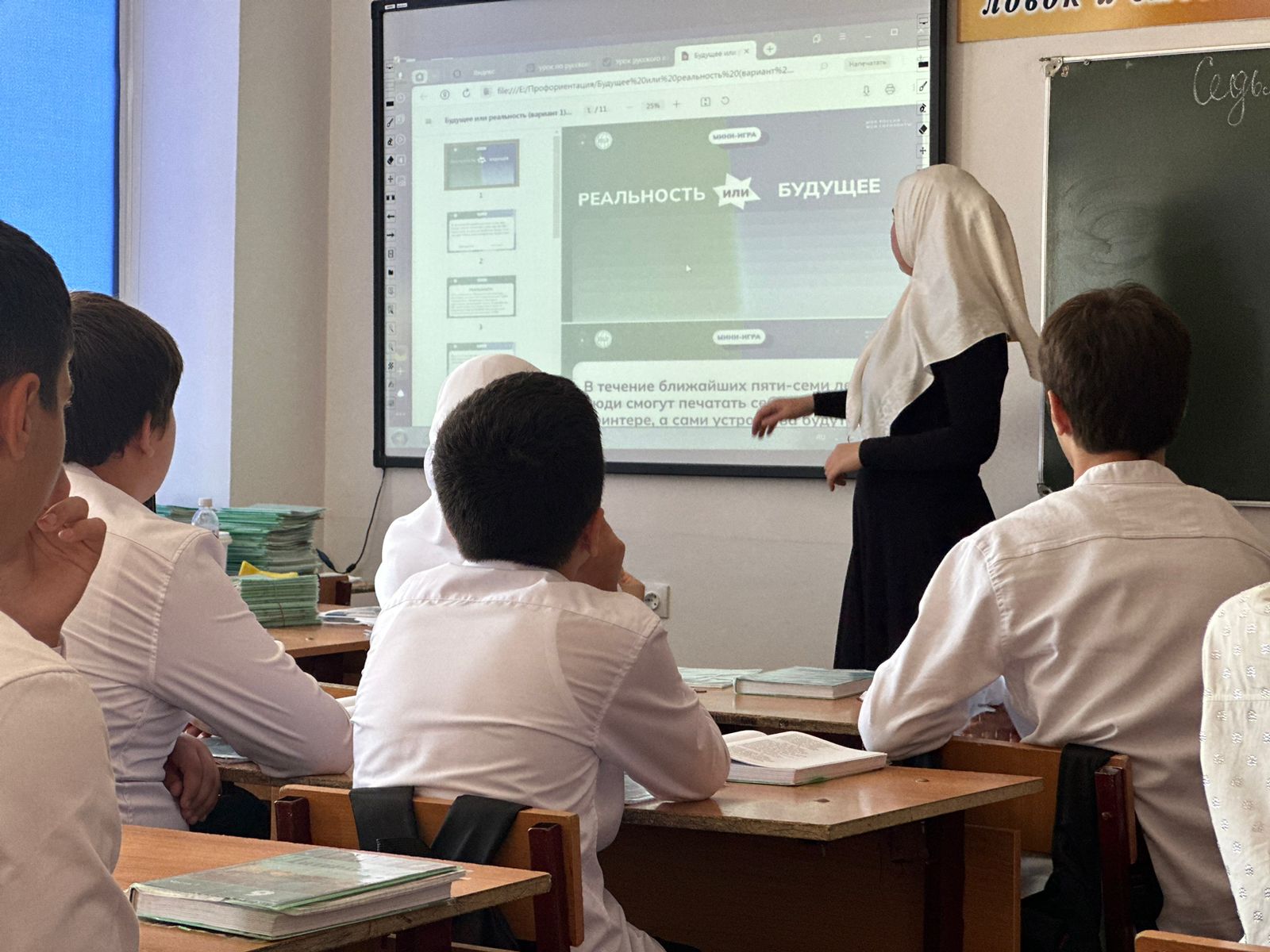 На первом занятии курса ребята из 9,,в" класса где кл. рук. Алиева Эльза Ваидовна узнали о важности труда в жизни каждого человека, отраслях экономики нашей страны, а также о качествах и навыках, которые необходимы для разных профессий.
