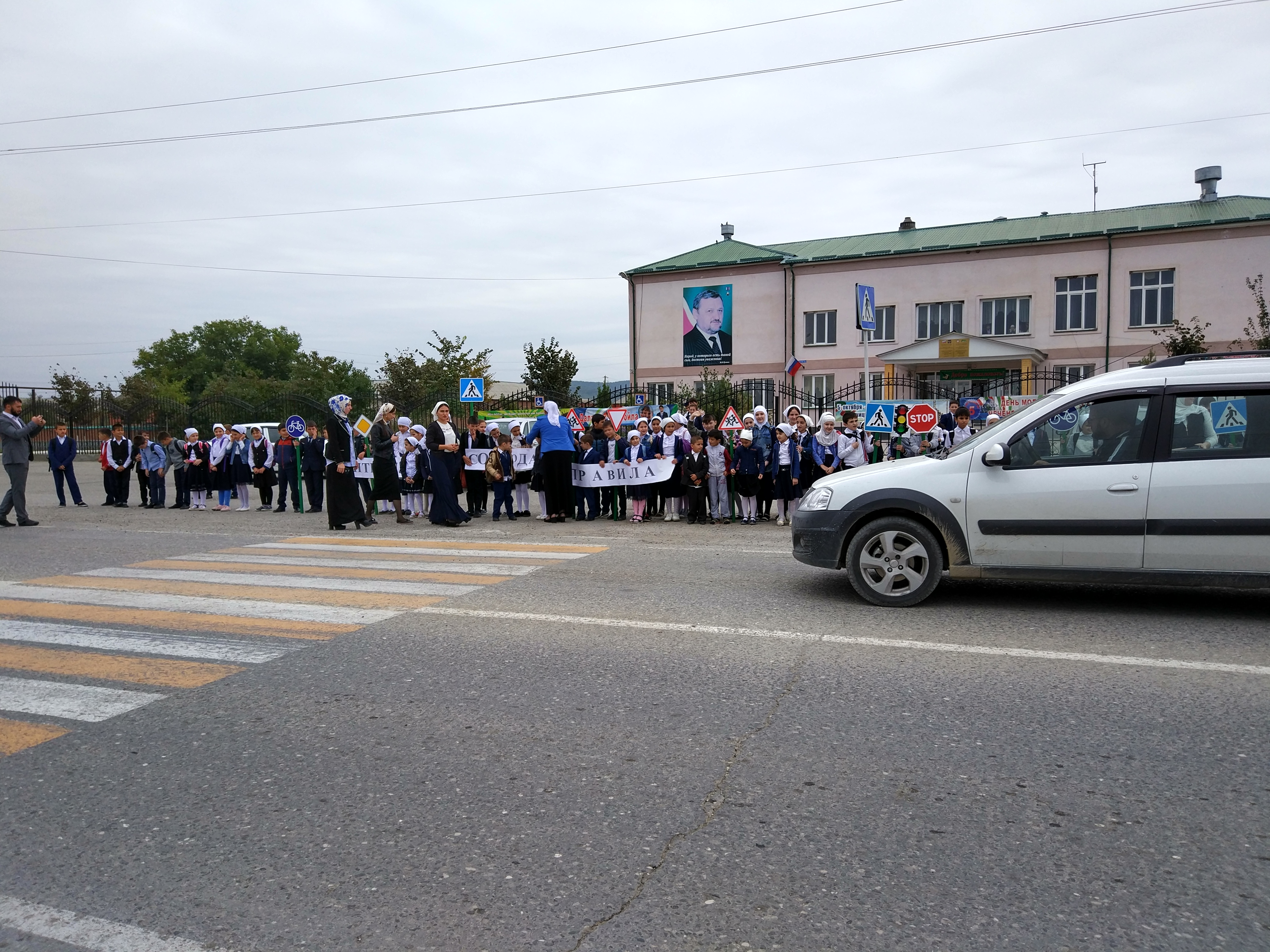 В рамках Недели безопасности дорожного движения 27.09.2017 года в 12.00 минут в МБОУ "Курчалоевская СШ №3" провели ФЛЕШ-МОБ.