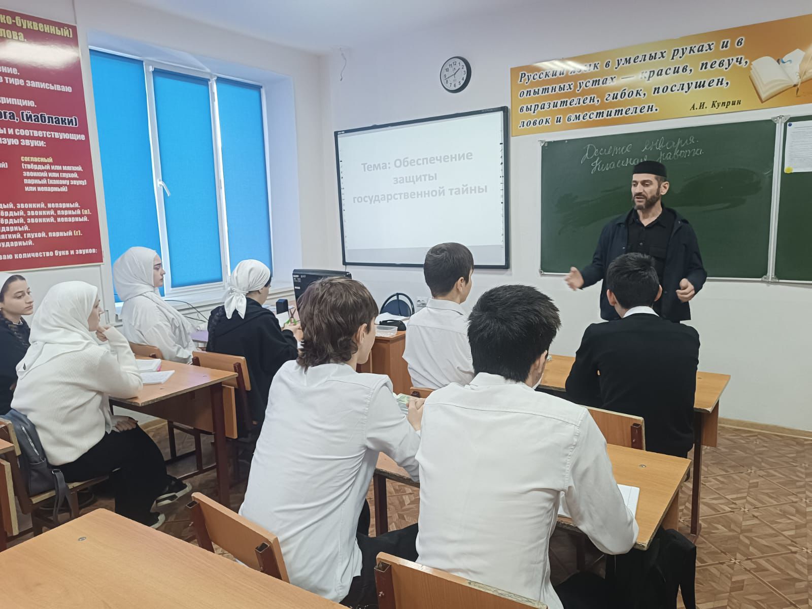 13.01.2025Совместно с сотрудниками Управления ФСБ России по Чеченской Республике проведено мероприятие на тему: «обеспечение защиты государственной тайны».В ходе встречи со школьниками сотрудники Управления рассказали, что целью в обеспечении защиты государственной тайны является исключение утечки информации, а также проведение мероприятий по защите государственной тайны и служебной информации.В рамках проведенного мероприятия приведены примеры совершенных преступлений в сфере обеспечении защиты государственной тайны на территории РФ, а также сроки наказания для лиц, привлеченных к уголовной ответственности за совершение указанных деяний по статьям 283.2 и 284 УК РФ.
