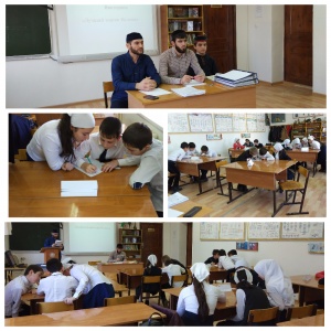 Педагог-организатор по ДНВ нащей школы Ибрагимов Ч-Х. Л.провел ряд мероприятий, приуроченных к месяцу Рабби-Уль-Авваль.