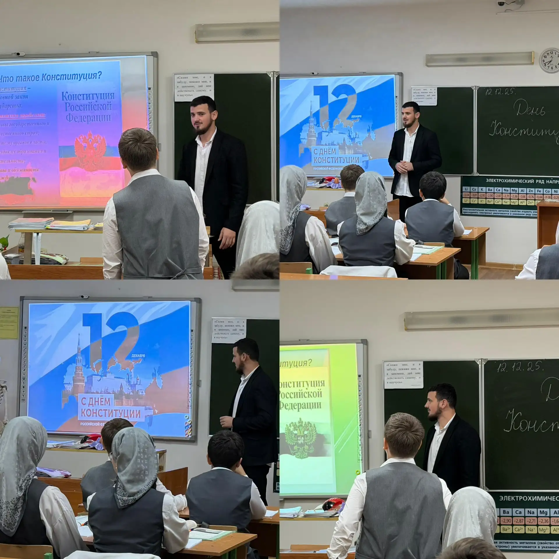 12.12.2025В МБОУ «Курчалоевская СШ 3» учителем истории Вахаевым А.А. совместно с советником директора по воспитанию среди обучающихся 8-9 классов проведена лекция «День Конституции», посвященная ко Дню Конституции Российской Федерации.