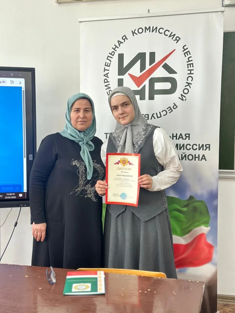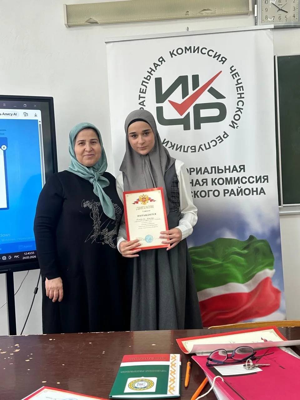 24.03.2026В рамках мероприятий, направленных на повышение правовой грамотности и патриотического воспитания, территориальной избирательной комиссией Курчалоевского района 24 марта 2026 г. в МБОУ «Курчалоевская СШ №3» был проведён этнодиктант, посвящённый Конституции Чеченской Республики. Диктант провела председатель УИК №162 Курчалоевского района Алиева Хеда Рамзановна. Цели мероприятия: формирование уважительного отношения к Конституции Чеченской Республики; повышение уровня правовой культуры обучающихся; развитие интереса к государственному устройству республики. В этнодиктанте приняли участие учащиеся 9-х классов. Участникам были предложены задания, включающие вопросы по основным положениям Конституции, правам и обязанностям граждан, государственным символам, а также системе органов государственной власти. Мероприятие прошло в организованной и доброжелательной обстановке. Учащиеся проявили высокий уровень заинтересованности и продемонстрировали хорошие знания. Результаты: По итогам проверки работ были определены победители: 1 место — Алабаева Жайна, ученица 9 «Г» класса; 2 место — Алабаева Раяна, ученица 9 «Г» класса; 3 место — Мидаева Эсила, ученица 9 «Г» класса, и Джабраилов Халид, ученик 9 «А» класса. Остальные участники также показали достойные результаты. Выводы: Проведение этнодиктанта способствовало повышению правовой грамотности обучающихся, формированию активной гражданской позиции и уважительного отношения к Конституции Чеченской Республики. Рекомендуется продолжить практику проведения подобных мероприятий.