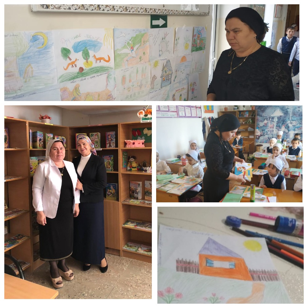 Была в гостях Серганова Зина Зайнутдиновна - помощник министра образования и науки ЧР, куратор отдела учебников и учебных изданий. Она ознакомилась с библиотекой, документацией библиотекаря школы, планом месячника школьных библиотек, посетила выставку детских рисунков.