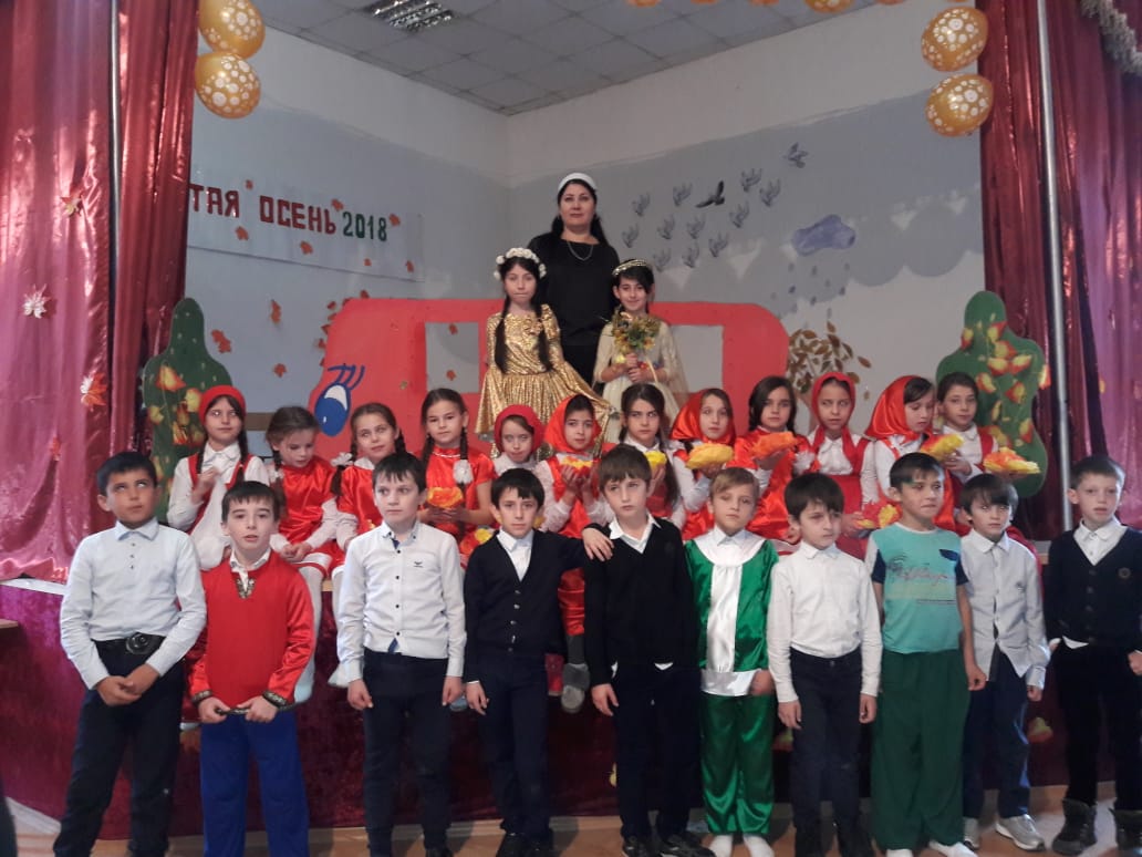 В стороне от впечатлений об осени не остались и ученики 3а класса нашей школы (кл.рук. Хадушова М. Б.). В актовом зале прошло открытое мероприятие, приуроченное золотой Осени на тему: "Осенняя история в Простоквашино". Ученики читали стихи, пели песни, танцевали, да и сказка "Репка" произвела на присутствующих неизгладимое впечатление.