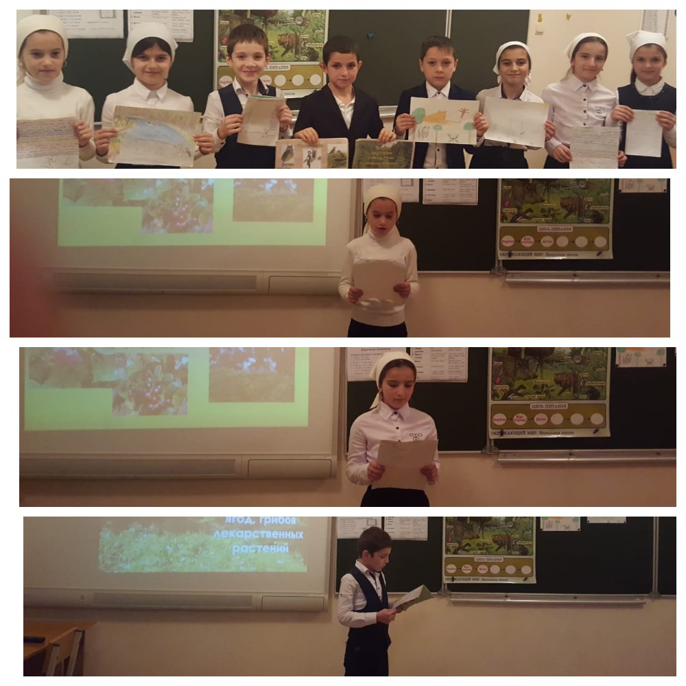 Израпова Макка Висарговна провела урок в 4г классе на тему "Лес и человек". На уроке учащиеся показали рисунки, которые они нарисовали на данную тему.