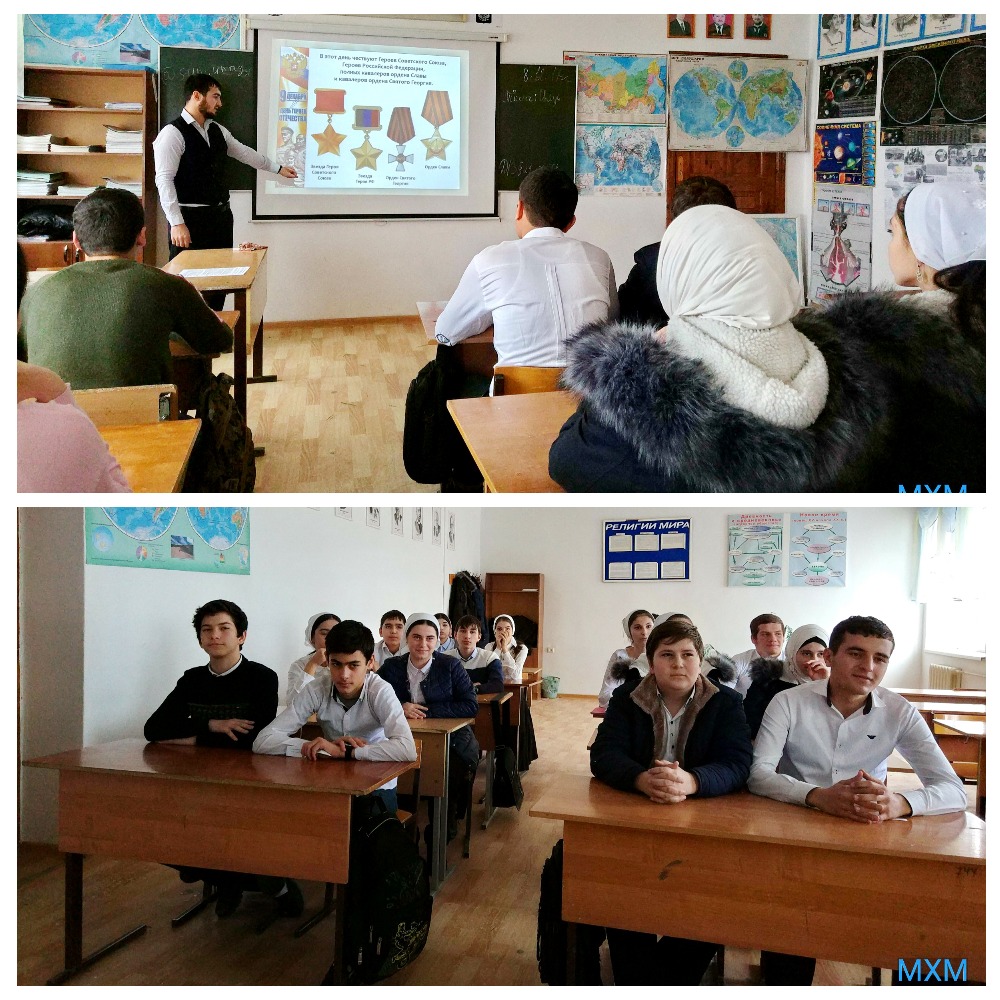 Сегодня учитель географии Аслан Асламбекович провел классный час приуроченный ко Дню героев Отечества.