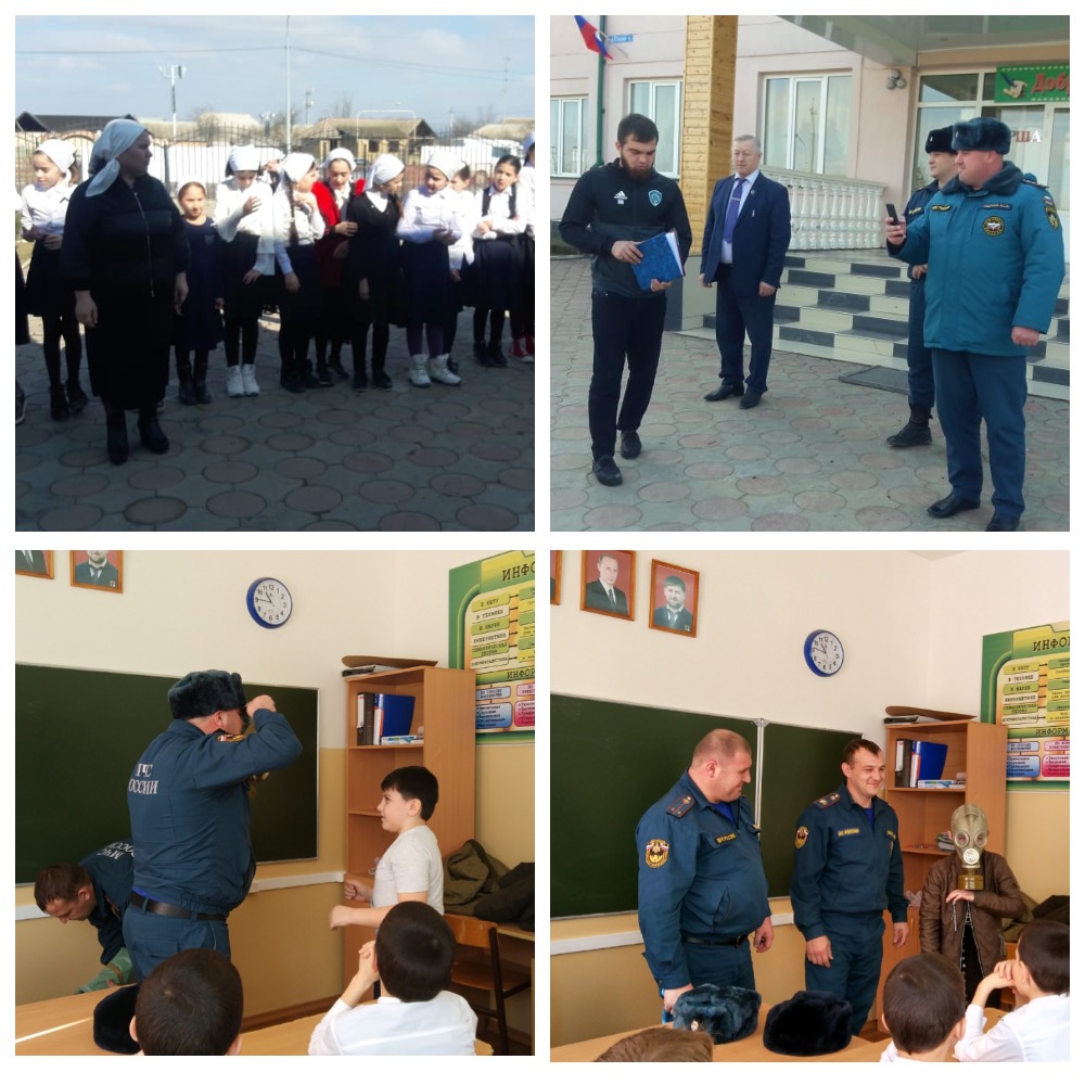 В школе была проведена учебная пожарная эвакуация. На мероприятие приехали лейтенант пожарной службы УГПС, МЧС РФ по Курчалоевскому району ЧР Джамалов Д. Р. и пожарный сержант Алисултанов Б. Х.