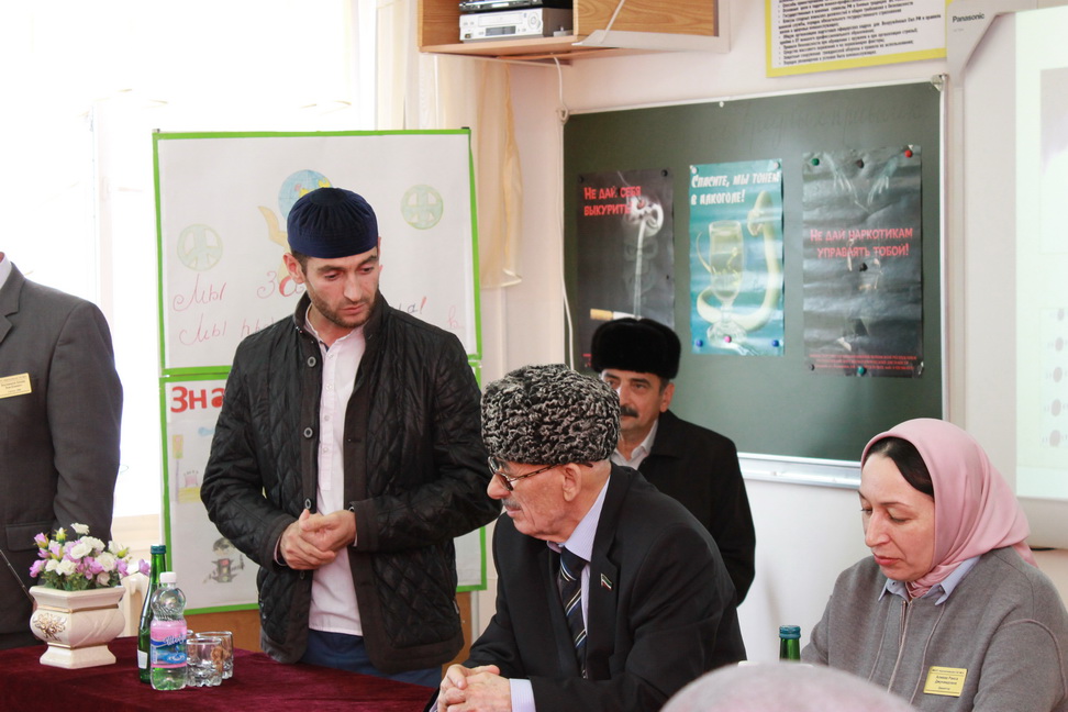 Далее выступил, депутат Парламента Чеченской Республики Висмурадов Джандар Тимирбиевич, в своем выступлении он сказал, что приятно удивлен работой школы по духовно-нравственному воспитанию, присутствие родителей на данном мероприятии говорит о том, что родители и школа работают в тесном контакте. Далее выступил социальный педагог школы Межидов Иса Абадиевич, в своем выступление он отметил, что наркомания- зависимость человека от различных веществ, вызывающих состояние эйфории: — приподнятое настроение, — состояние удовольствия. Это состояние не соответствует реальным обстоятельствам и приводит к разрушению психического и физического здоровья. Даже однократное употребление наркотиков может привести к психологической зависимости, которая остается на всю жизнь. Хорошо известно, что ислам запрещает потребление наркотиков и алкоголя.