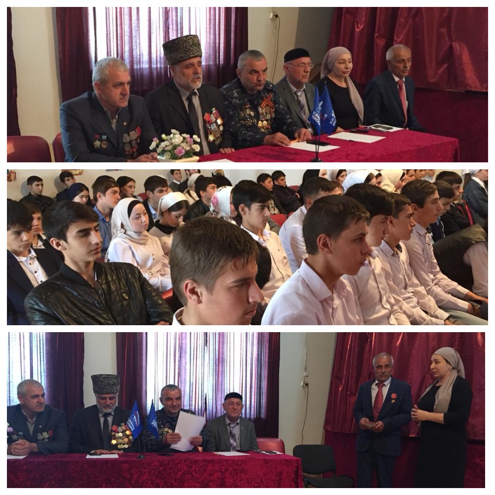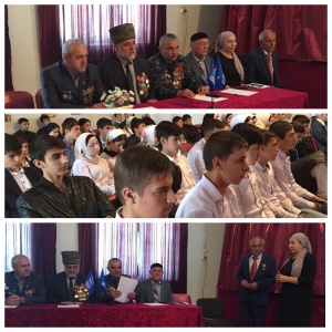 Сегодня в нашей школе прошло мероприятие, преуроченное ко Дню Победы. Были приглашены гости, в числе которых были: Нанаев Хасан Юнаидович Председатель Чеченского республиканского " Союза ветеранов Афганистана, локальных войн и военных конфликтов" по г. Грозный.